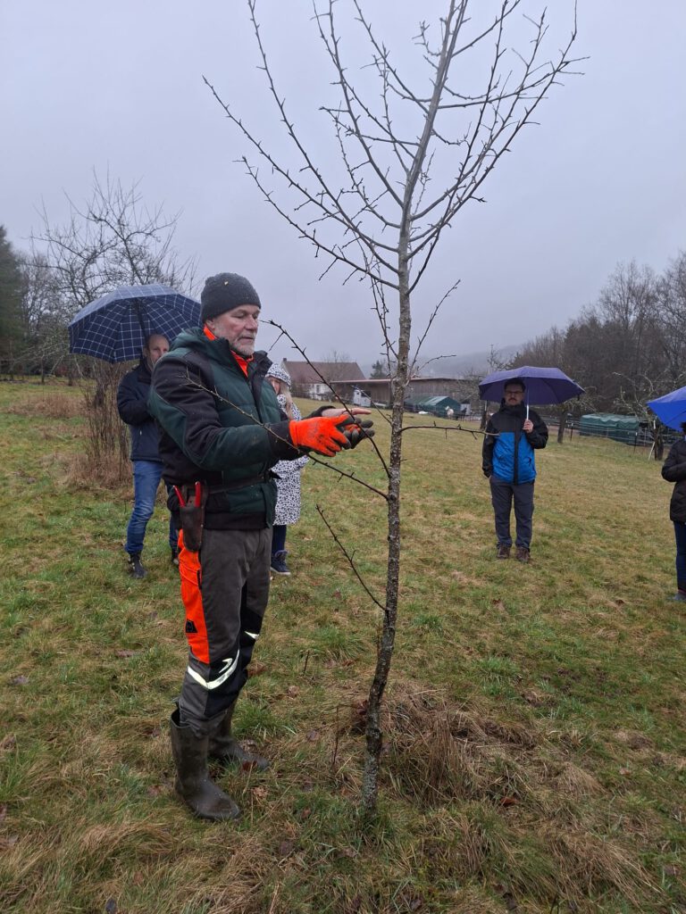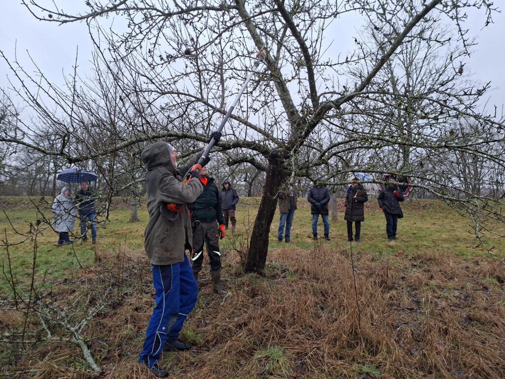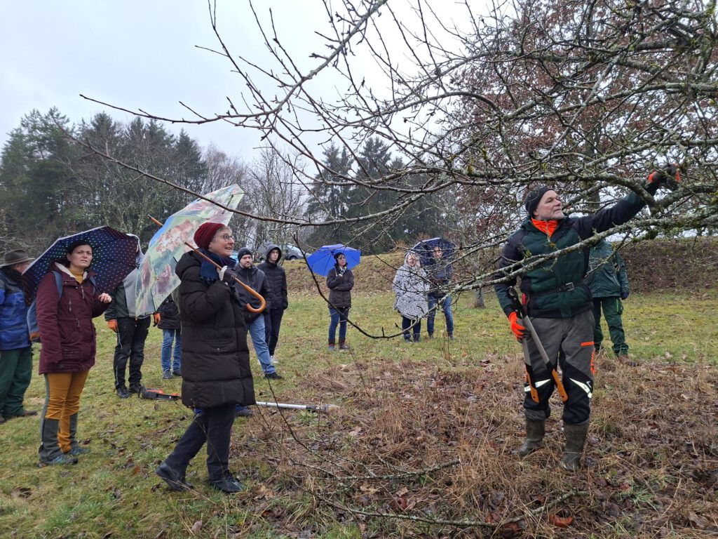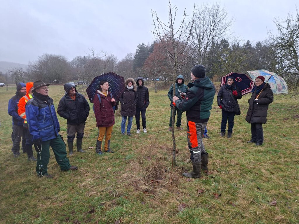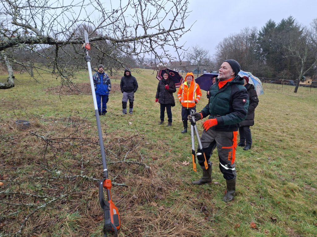 Bei bescheidenem Wetter fand am 21.02.26 ein umso großartigerer Baumschnittkurs statt. Es gab einen großen Rundumschlag zum Thema Baumpflege und neben der gut aufbereiteten Theorie konnte das Wissen an den Bäumen in der Streuobstwiese direkt angewendet werden.